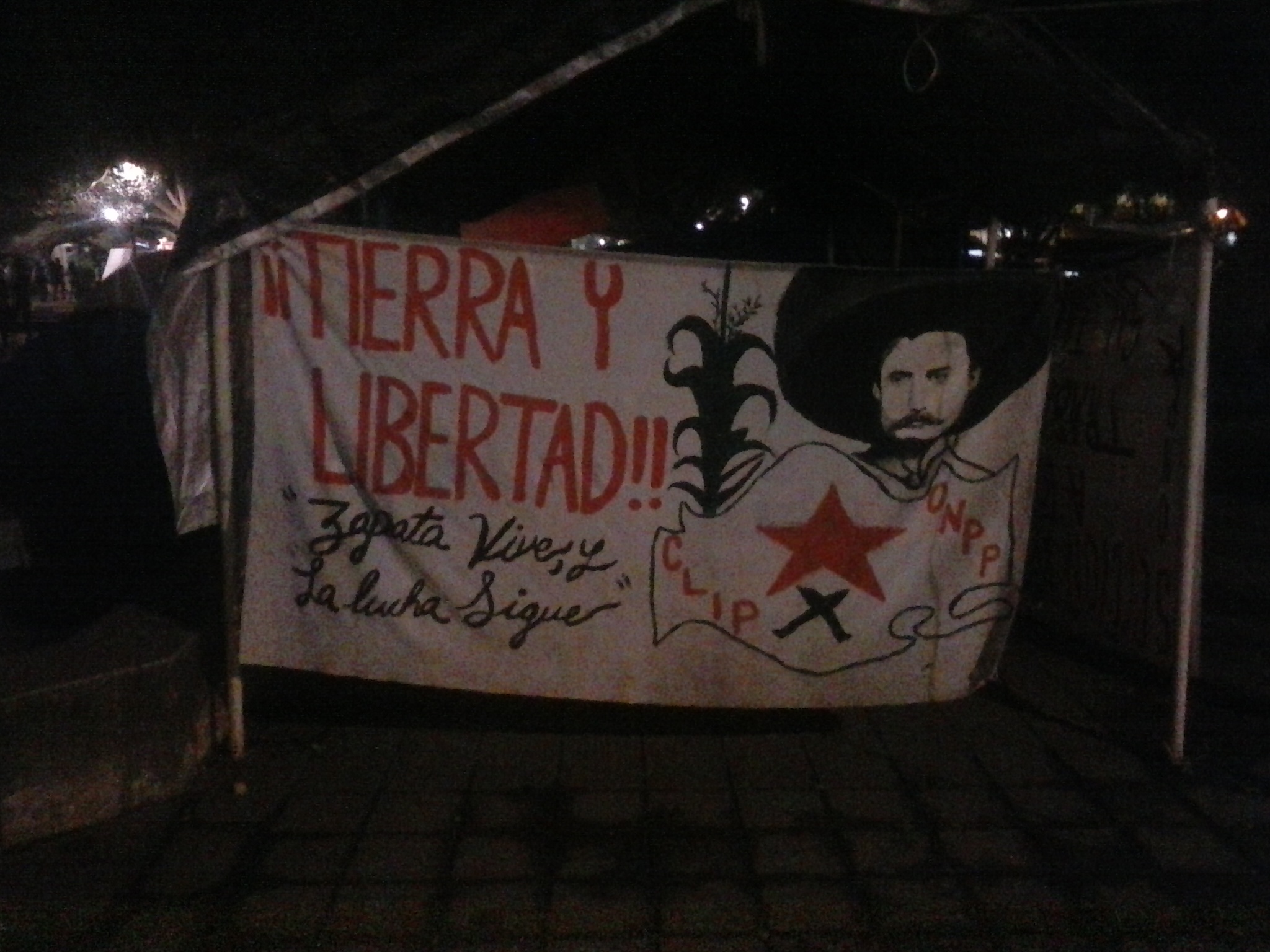 Tierra y libertad (Land and liberty) Zapata vive, y la luche sigue (Zapata lives, and the fight continues) Emiliano Zapata(wikipedia page) was a prominent figure in the Mexican Revolution, fighting for peasant's land rights. His legacy in Mexico is far reaching around the entire country. It would be difficult, if not impossible, to find a town or city that does not have a street bearing his name. The ideas he fought for have inspired the Zapatista Army of National Liberation (wikipedia page) in Chiapas.