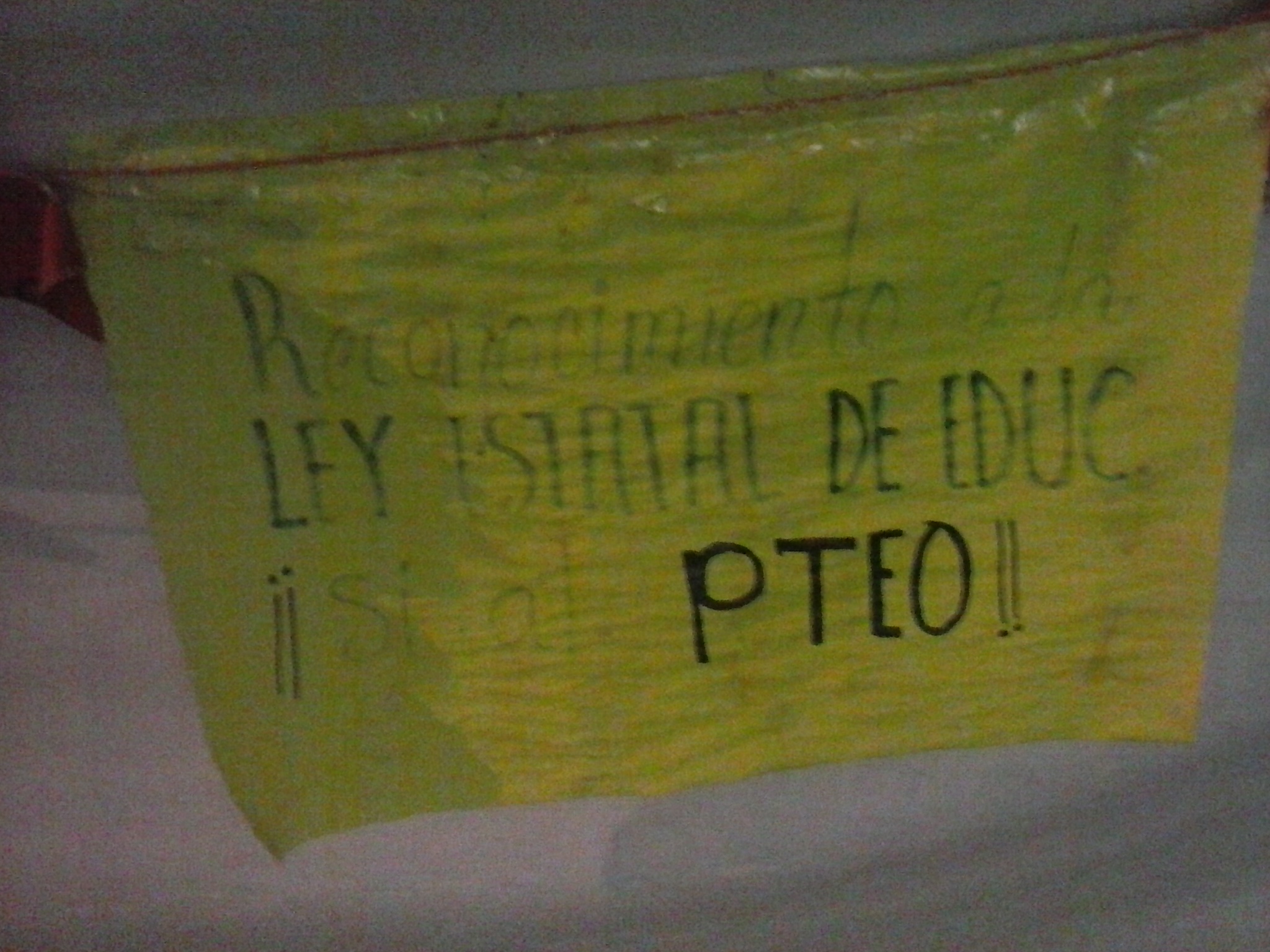 Reconocimiento a la ley estatal de educ (Recognition of the state education law) Sí al PTEO! (Yes to the PTEO [Plan for the Transformation of Education of Oaxaco])